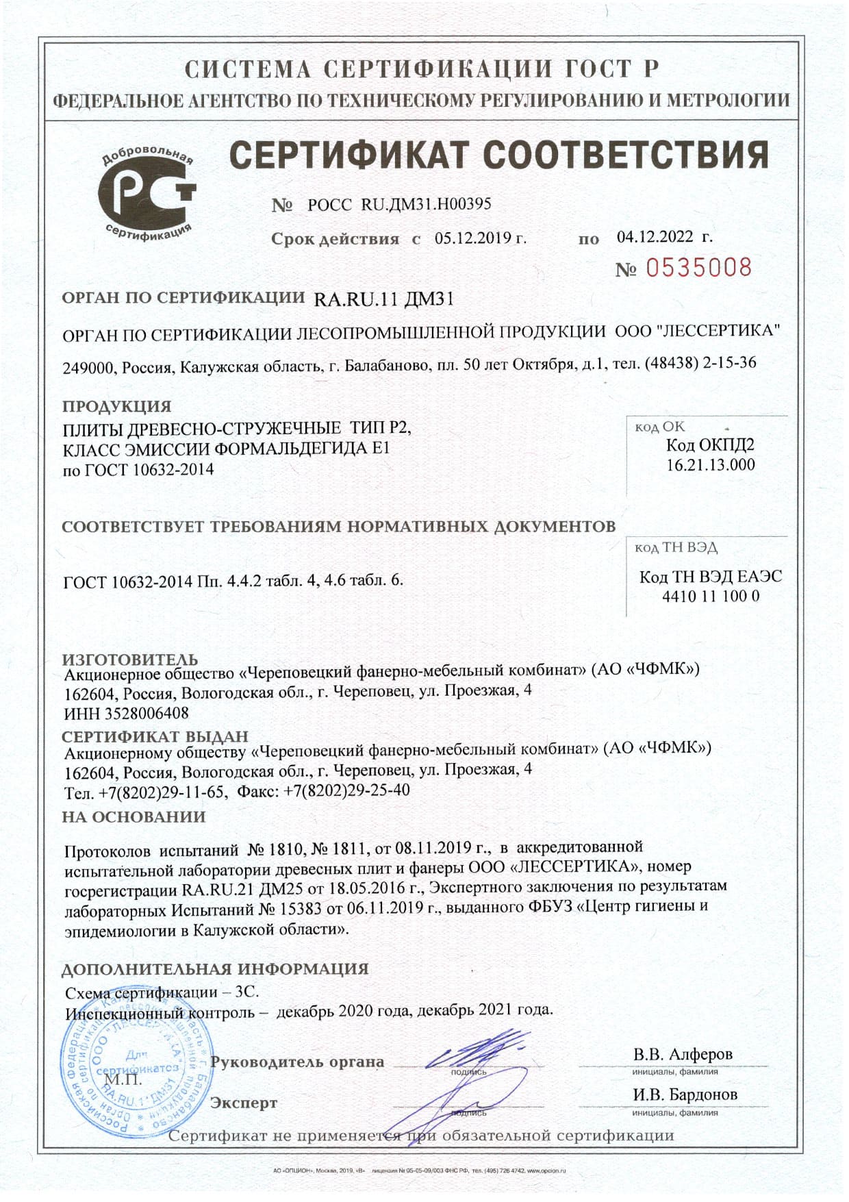 Подтвержденное сертификатами и действующими ГОСТ